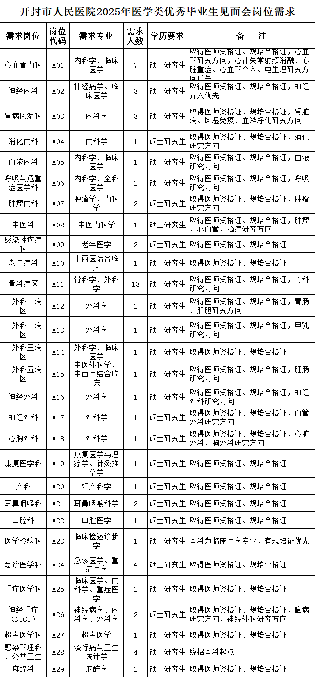 投遞方式:在2025年2月2日之前將身份證、本科和研究生畢業證(2025年畢業的提供學信網上學籍在線驗證報告)、學位證、學歷認證、規培證(或規培證明)以圖片形式粘貼到word文檔,文檔以“姓名+專業+崗位代碼”命名和附件2《開封市人民醫院2025年醫學類優秀畢業生見面會人員登記表》填好后同步發送我院郵箱,審核結果通過郵箱回復,請注意查看。