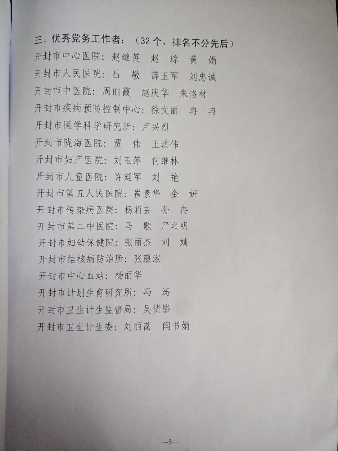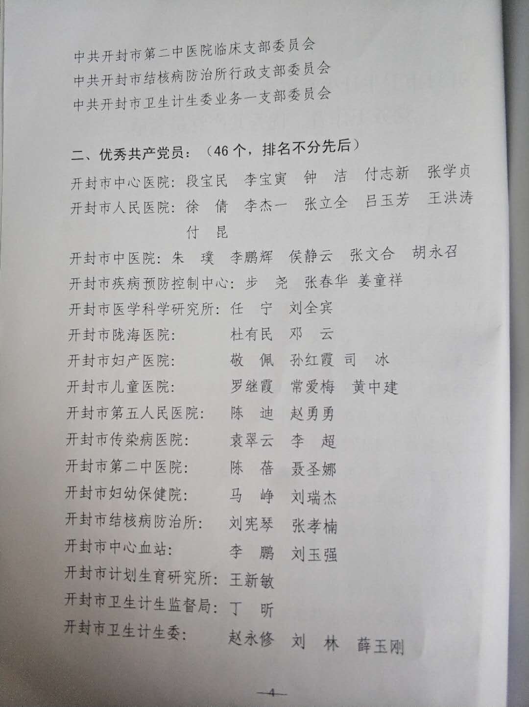 中共開封市委衛生和計劃生育工作委員會關于表彰全市衛生計生系統先進基層黨組織、優秀共產黨員和優秀黨務工作者的決定