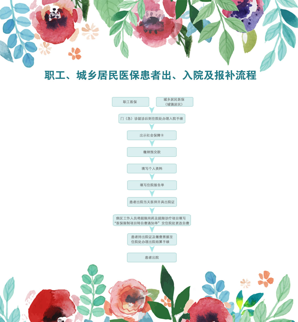 首頁 醫保須知 職工、城鄉居民醫保患者出入院及報補流程