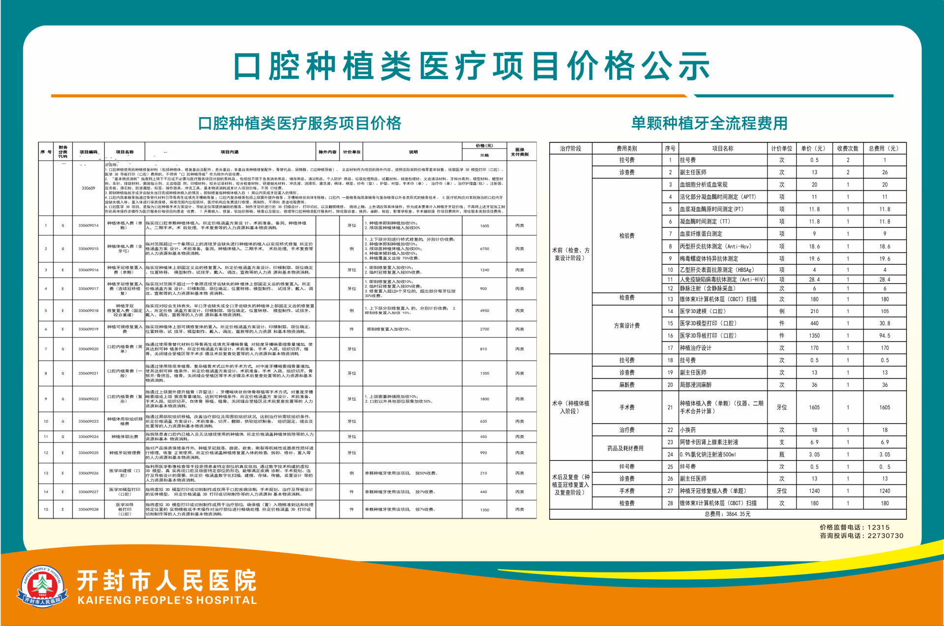 口腔種植類醫療項目價格公示